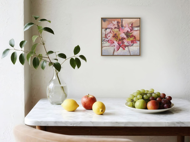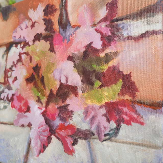 The original oil painting is a 20 x 20 cm stretched canvas.